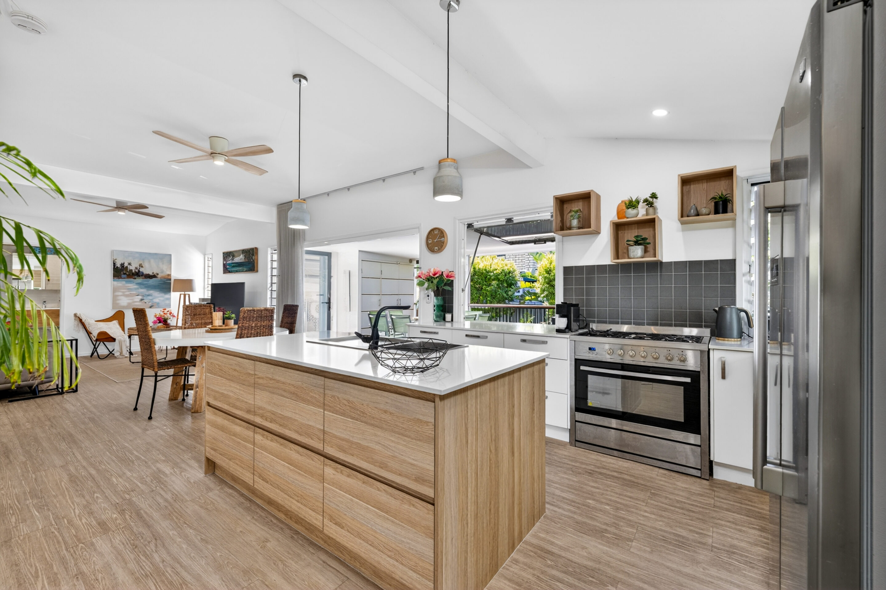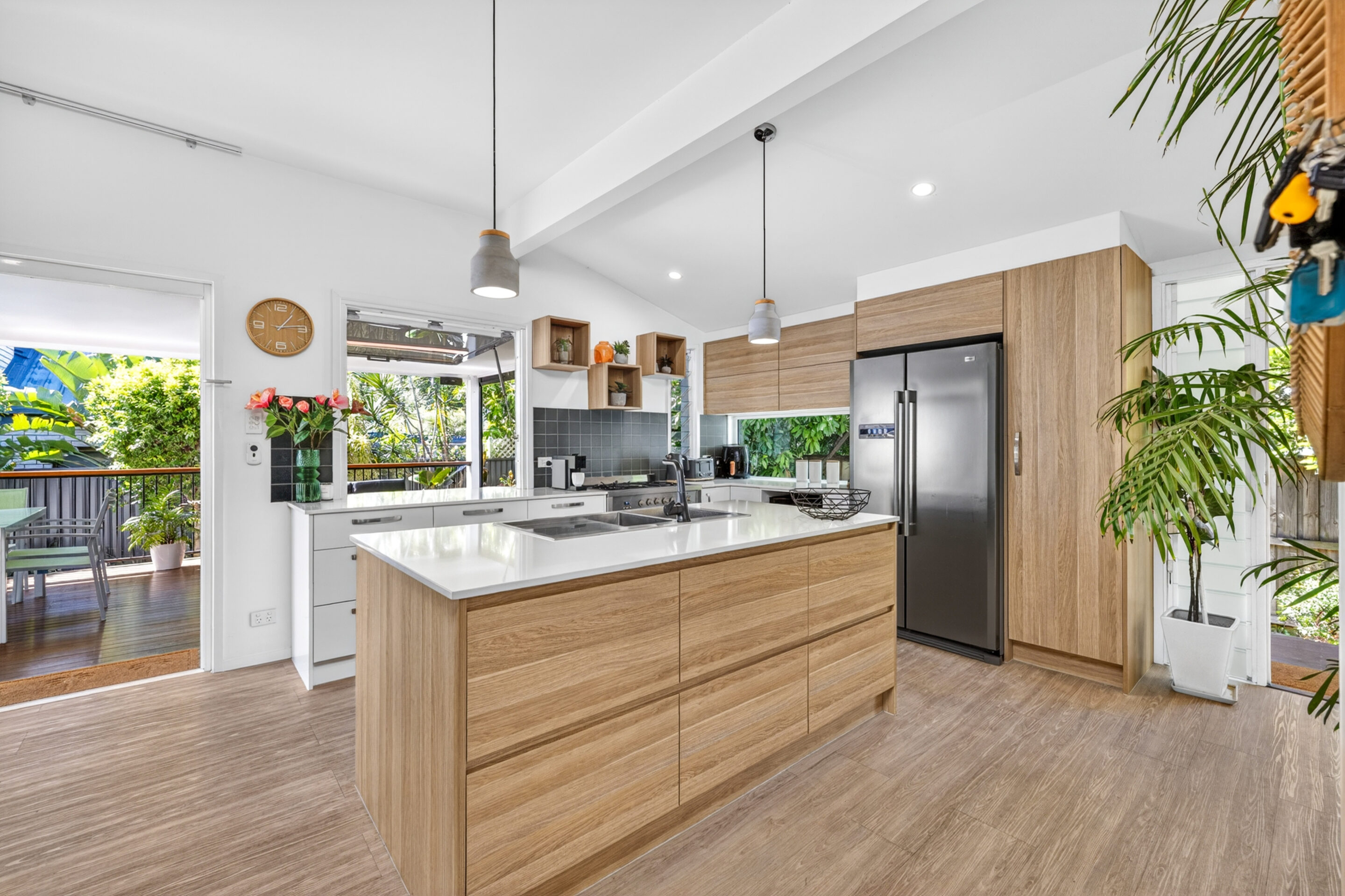 Step outside and experience your own private oasis. A huge covered balcony with a servery window and integrated BOSE surround sound system sets the scene for unforgettable gatherings, while tropical gardens create a lush, resort-style atmosphere. Take a dip in the plunge pool or rinse off under the outdoor shower after a morning at the beach.
